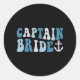 Pegatina Redonda Captain Bride Groovy Cruise Bachelorette Náutica