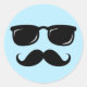 Pegatina Redonda Cara cognitiva con bigote y gafas de sol