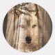Cara de lobo en el rayo de sol de un bosque desnudo, fantasmal y espiritual