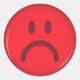 pegatinas redondos personalizados con una cara roja e infeliz. También hay un verde, alegre en el mismo estilo.