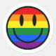 Esta colorida obra de arte muestra una cara de carita de caricatura arcoiris.