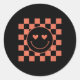 Pegatina Redonda Cara sonriente del día de San Valentín Retro a cua