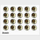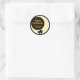 Pegatina Redonda Caramba gato en luna amarilla feliz favor de hallo
