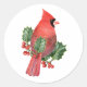 Pegatinas del saludo acuático del artista Dolores Robak - El cardenal norte masculino es inconfundible, con su plomo rojo brillante y su máscara negra. Este bonito pájaro rojo es aún más llamativo entre las vibrantes hojas verdes y bayas rojas de un árbol sagrado.
