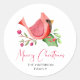 Pegatina Redonda Cardenal rojo Personalizado acuarela Feliz Navidad