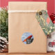 Un pegatina de agradecimiento con una fotografía de un cardenal rojo bonito parado en un trozo de madera.