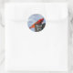 Pegatina Redonda Cardenal rojo sobre trozos de madera gracias