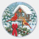 Pegatina Redonda Cardenales y Navidades Alimentador de aves