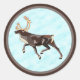 Un caribú lindo, o reno (Rangifer tarandus), en estilo de arte folclórico, superpuesto sobre una imagen de fondo nevada. Puede cambiar el color de los anillos de borde o eliminarlos por completo.