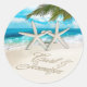 Estos bonitos pegatinas de bodas de la familia Starfish Pareja favorecen la boda con un par de estrellas de mar "manos a la obra" en una playa de arena blanca. <b>Si quieres que dibuje tus nombres en la arena, ¡por favor CONTACTE CONMIGO ANTES DE HACER TU PEDIDO!</b>También están disponibles las invitaciones de casamiento, guardar las fechas, sobres, pegatinas, tarjetas RSVP, placas de papel, galletas y favores imanes. Para preguntas o solicitudes de personalizado, póngase en contacto con:<font color="D90773">cheryl@cheryldanielsart.com<b>. </b>() Diseño de "White Sands Starfish Beach"</font>de Cheryl Daniels © 2015.