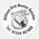 Pegatinas de la Tienda de Carniceros con tu elección del nombre de la empresa y el número de teléfono. El ilustracion muestra un trozo de carne.