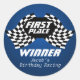 Pegatina Redonda Carreras Cumpleaños Banderas Verificadas Primer Lu