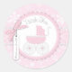 Pegatina Redonda Carrito de bebé rosado y copo de nieve gracias