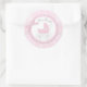 Pegatina Redonda Carrito de bebé rosado y copo de nieve para invier