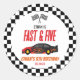 Pegatina Redonda Carro de carreras rápido y cinco con llama roja Fi