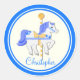 Pegatina Redonda Carrusel Horse Blue Gold Stars