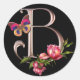 PEGATINA REDONDA CARTA DE MONOGRAMA B CON ROSAS Y MARIPOSAS