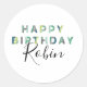 Pegatina Redonda Cartas verdes azules personalizadas Feliz cumpleañ