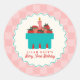 Pegatina Redonda Cartel de la cesta de fresas de 1 cumpleaños de Be