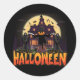 Pegatina Redonda Casa de calabaza asustada, Halloween