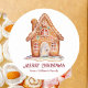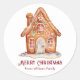 Pegatina Redonda Casa de pan de jengibre de Navidad en acuarela