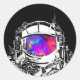 obras de arte decorativas de un astronauta de color blanco y negro que te mira mientras su casco refleja una colorida nebulosa del espacio surrealista.