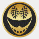 PEGATINA REDONDA CASCO DE CARRERAS ORO CON BANDERAS VERIFICADAS