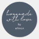 Rústico y moderno, hecho en casa con pegatina de amor, cuenta con una elegante caligrafía manuscrita en un fondo azul oscuro. ¡Perfecto para todos tus regalos caseros! Simplemente agregue su nombre a la etiqueta. Diseñado exclusivamente para usted por Happy Dolphin Studio!