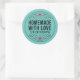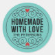 Un verde azulado pegatina "casero hecho con amor". Hazlo tuyo añadiendo tu propio nombre. Un toque de bonito para todos sus regalos caseros o hechos a mano. Hay otros colores disponibles. Diseñado para ti por Blackberry Boulevard.