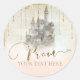 Pegatina Redonda Castillo de cuento de hadas con purpurina dorada p