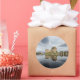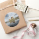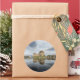 Pegatina Redonda Castillo Eilean Donan con reflexión en Escocia