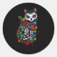 Pegatina Redonda Cat Kitty Kitten Paws Sugar Skull Calavera Hallowe