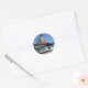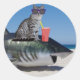 PEGATINA REDONDA CAT ON BEACH SHARK