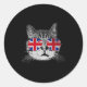 Pegatina Redonda Cat Shirt Union Jack Flag Country Retro England Br