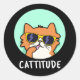 Pegatina Redonda Cattitude Funny Cat Pun Dark BG