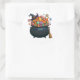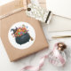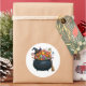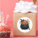 Cauldron De Giggle & Gummies Pegatina Redondo Clásico. Vigas de caldero alegres, llenas de caramelos estallando como confeti, orgullosamente luciendo a un gorra de brujas. Su compañero de broomstick se inclina hacia delante, esperando claramente el despegue con combustible dulce, ¡el brujo-móvil más feliz de Halloween con azúcar!