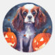 Pegatina Redonda Cavalier de Halloween King Charles Spaniel