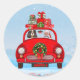 Pegatina Redonda Cavalier King Dog En Coche Con Santa Claus