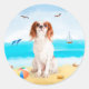 El perro lindo sentado en la playa es un regalo perfecto para alguien que ama esta raza de perro.