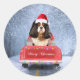 Pegatina Redonda Cavalier King en Nieve sentado en un camión de Nav
