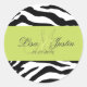 Impresión de cebra en blanco y negro, pegatinas de boda monograma (selladores de sobre), tonos de acento apio. Ideal para el uso diario. Personalizable completo. Las fuentes y los colores de fondo se pueden cambiar fácilmente. Copyright © 2009 PixDezines.com y PixDezines en zazzle.com
