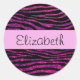 Pegatina Redonda Cebra rosa, cebra Purpurina, impresión de cebra, n