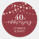 Pegatina Redonda Celebración de Anniversay en rojo y blanco 40° Bod