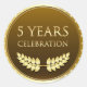 Calcomanía de celebración de cinco años dorada con una corona de laurel.