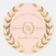 "La vegetación de hojas fue Pegatina redondo clásico de la celebración de Bodas rosados y dorados de Rubor para Sellos para sobres Bodas y Pegatinas favoritos". Las hojas de laurel elegantes y sencillas forman una corona en el centro de este plato con una tipografía "y" diseño de hojas de oro que resalta sus nombres y fecha de boda. Se puede cambiar el color de fondo rosado de color de color rosa de color negro pastel. Diseñado por la artista con licencia internacional Audrey Jeanne Roberts, copyright.