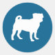 Pegatina Redonda Celebración del tema azul Pug Fiesta