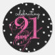 Pegatina Redonda Celebrando 21 - 21 Cumpleaños Rosa Negro Blanco
