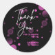 Un pegatina de agradecimiento moderno, elegante y glamuroso. Este diseño presenta una vibrante tipografía "Gracias" con un fondo negro en un gradiente rosado. Personalízalo con tu texto.
