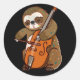 Pegatina Redonda Cellist Sloth Cello Player Orchestra Music Animal