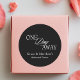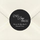Presentamos nuestra "Calcomanía redonda clásica negra y blanca para cena de ensayo de "Un día para llegar"." Estas elegantes calcomanías añaden un toque de sofisticación a su cena de ensayo, con un diseño atemporal en negro y blanco. Perfectas para sellar invitaciones, decorar bolsas de favores o personalizar la decoración, cada calcomanía marca hermosamente la anticipación de su gran día. El diseño clásico y el mensaje "Un día para llegar" crean una adición memorable y elegante a sus celebraciones previas a la boda, estableciendo un tono refinado para su evento especial.
